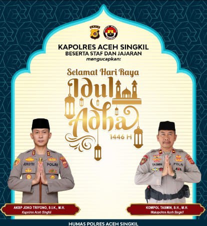 Seluruh jajaran Polres Aceh Singkil dan Bhayangkari berharap perayaan Idul Adha 1446 H/2025 M ini berjalan lancar, aman, dan penuh keberkahan bagi seluruh umat Muslim.