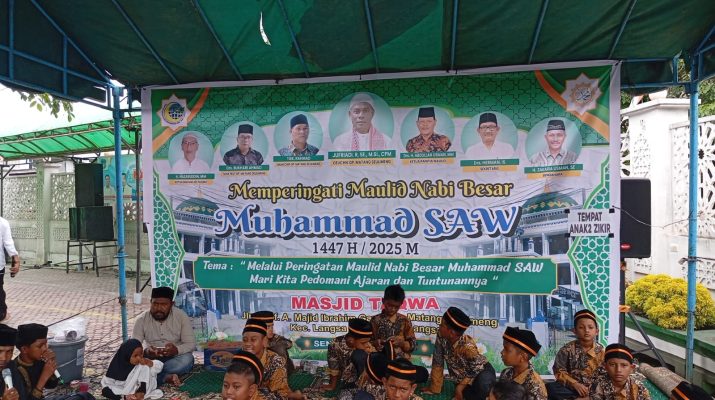 Langsa Barat, wartapolri.com – Suasana penuh khidmat dan kebersamaan menyelimuti peringatan Maulid Nabi Muhammad SAW 1447 H/2025 M yang digelar di Mesjid Taqwa Gampong