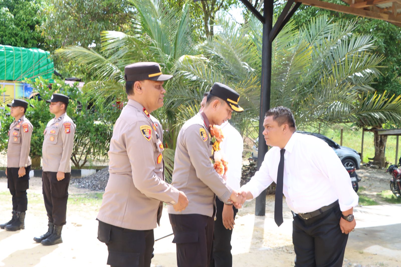 Kapolres Aceh Singkil AKBP Joko Triyono, menyampaikan tujuannya mendatangi Kantor Kepolisian Sektor (Polsek) Danau Paris kepada seluruh personel Polsek Danau Paris dan disaksikan pejabat Forkopimcam Danau Paris dan masyarakat Danau Paris.