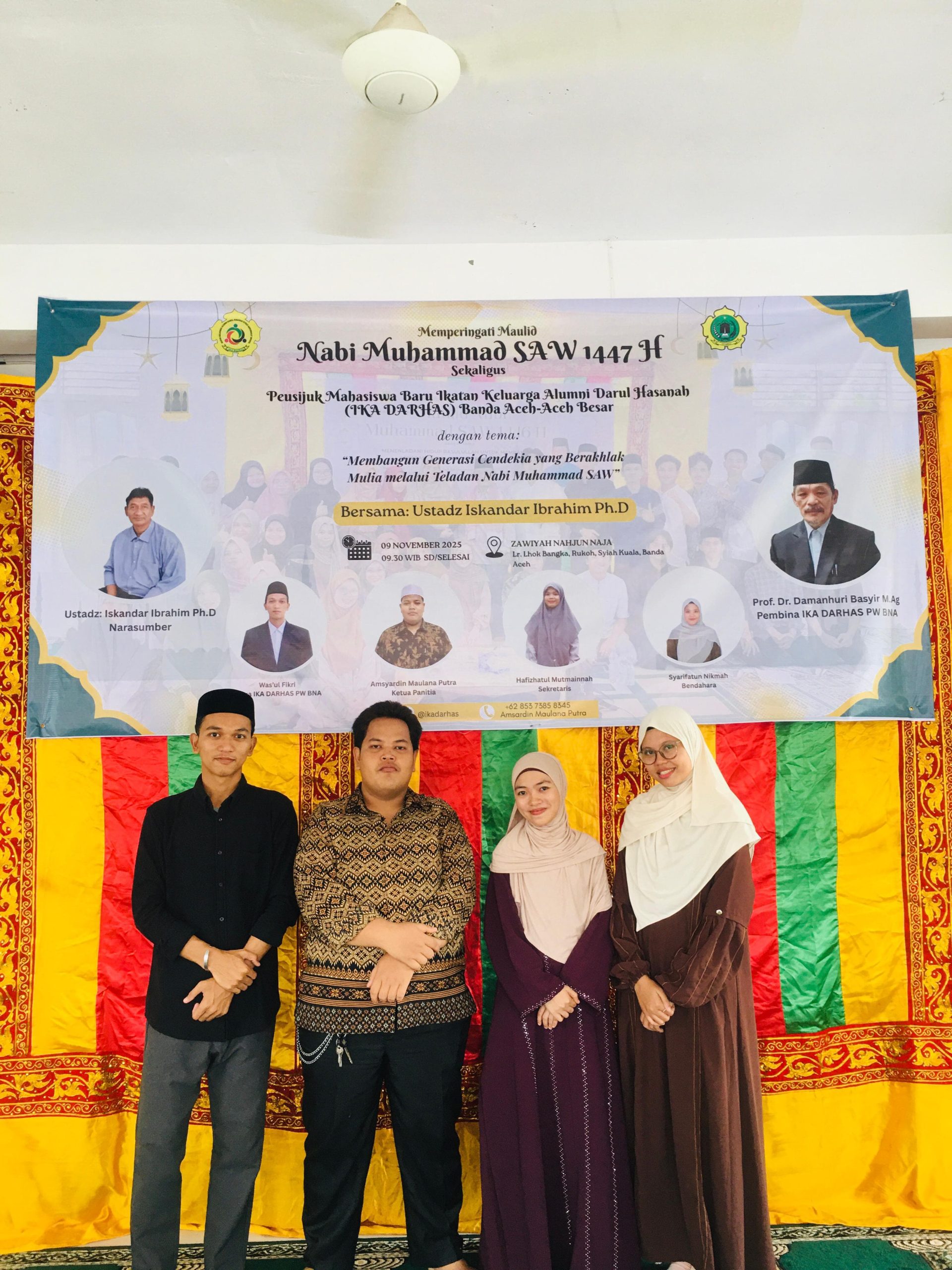 “Alhamdulillah, acara Maulid Nabi dan Peusijuek Mahasiswa Baru IKA DARHAS tahun ini berjalan dengan sukses berkat kerja sama seluruh panitia, dukungan para alumni, dan partisipasi aktif mahasiswa. Semoga kegiatan ini menjadi awal yang baik bagi kita semua untuk terus memperkuat ukhuwah dan meneladani akhlak Rasulullah SAW dalam kehidupan sehari-hari,” ujar Amsyardin Maulana Putra, Ketua Panitia Pelaksana.