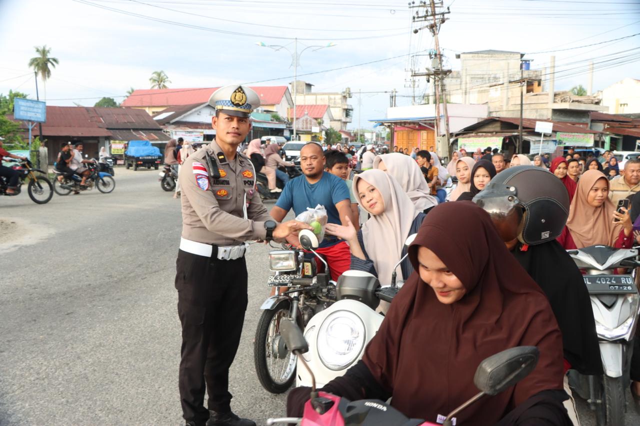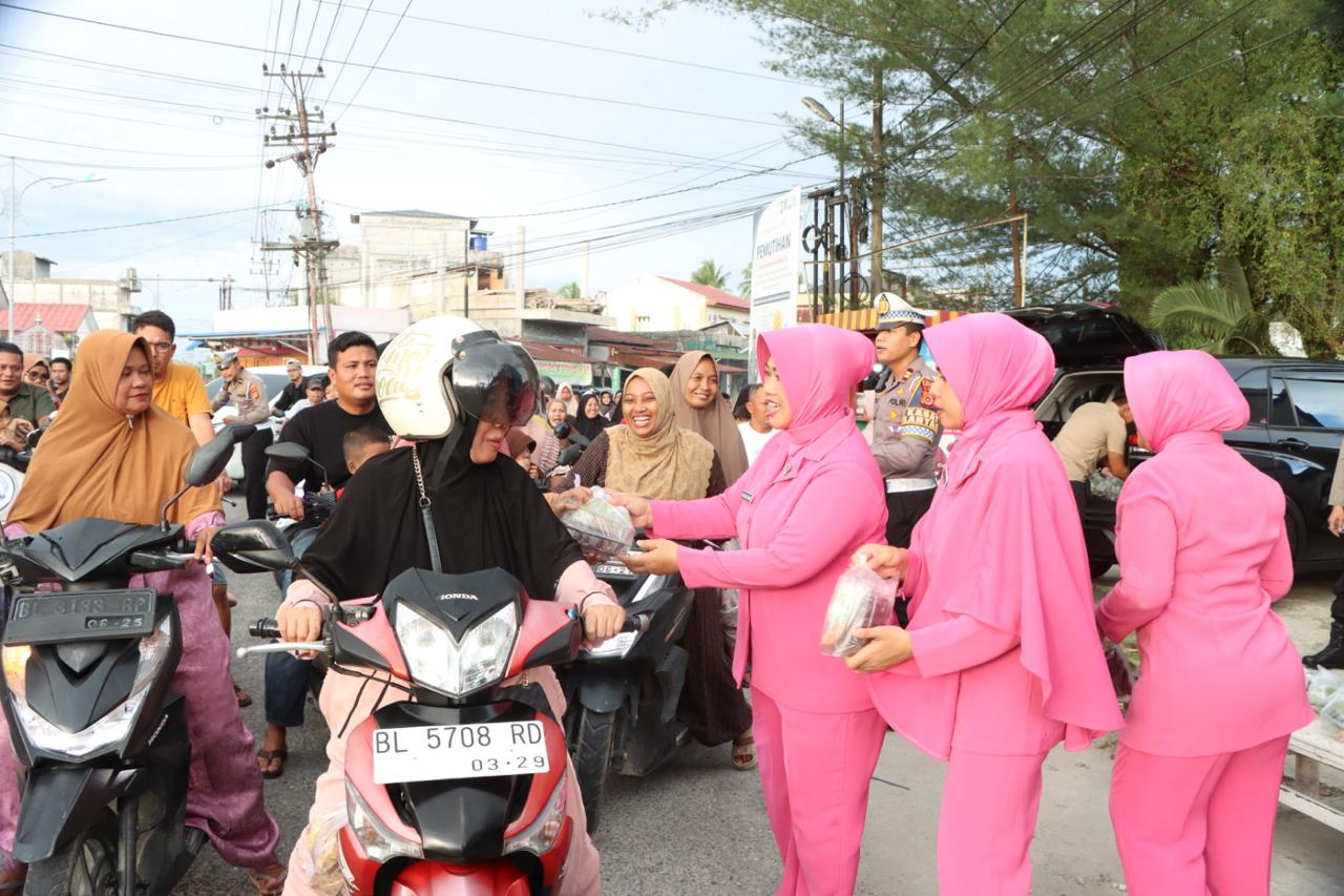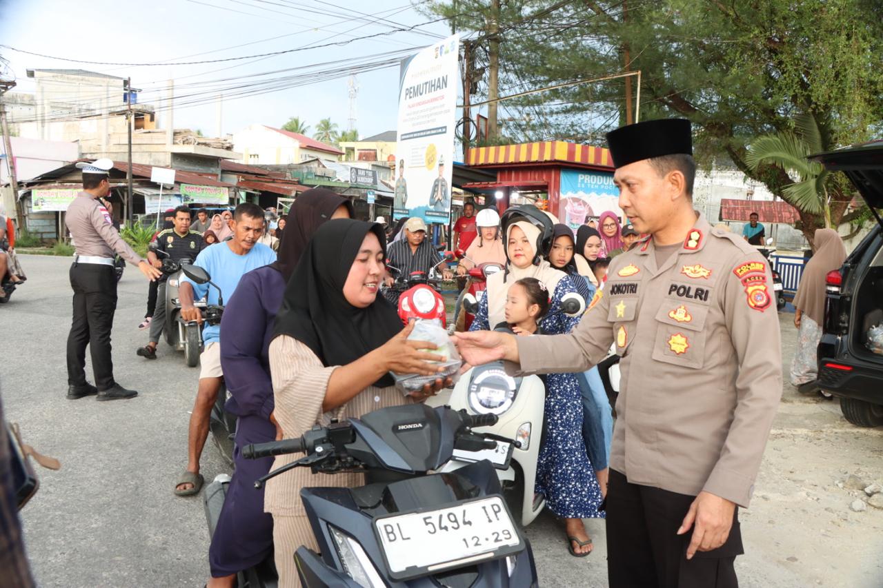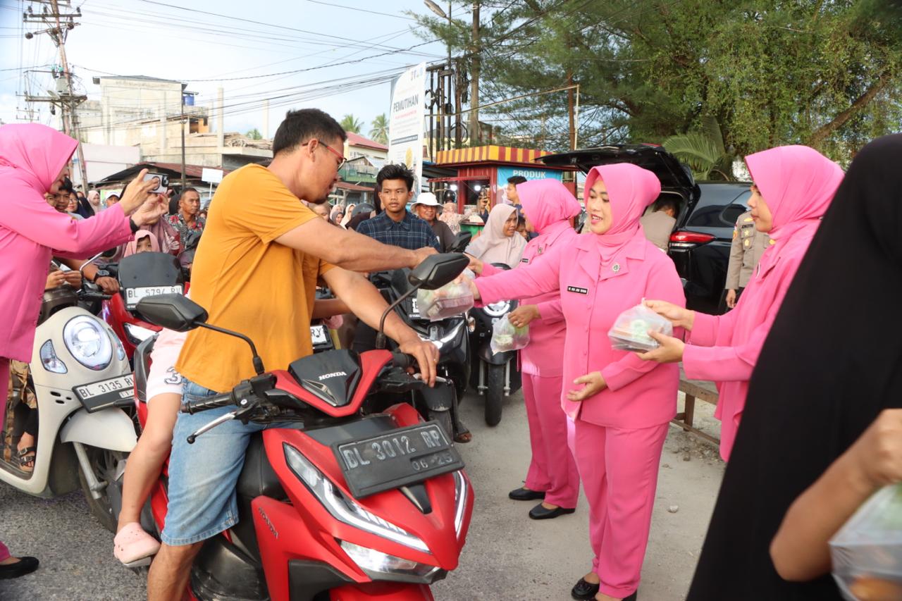 Kegiatan sosial tersebut dipimpin langsung oleh Kapolres Aceh Singkil AKBP Joko Triyono,S.I.K.,M.H., didampingi Ketua Bhayangkari Ny. Heni Joko Triyono serta personel, dan pengurus Bhayangkari. Ratusan paket takjil dibagikan kepada pengendara, tukang becak, serta masyarakat yang melintas menjelang waktu berbuka puasa.