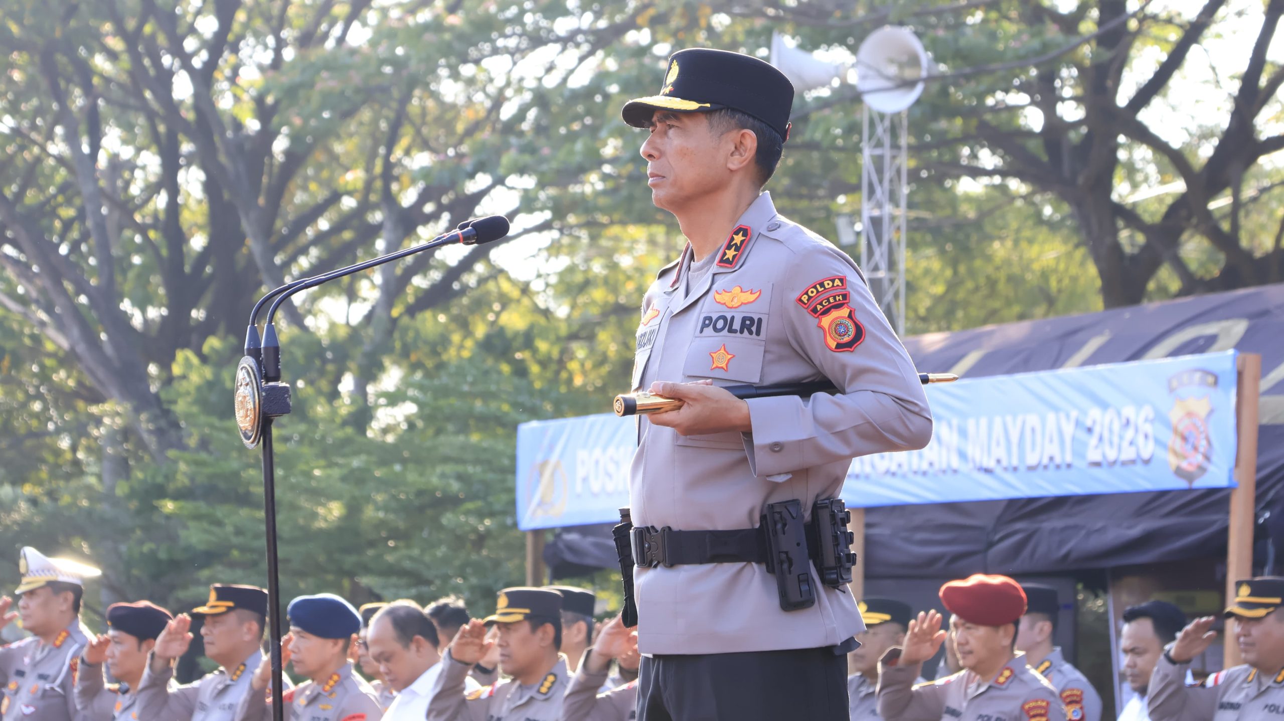 Upacara Laporan Kenaikan Pangkat ini dipimpin langsung oleh Kapolda Aceh, Irjen Pol. Drs. Marzuki Ali Basyah, M.M., yang bertindak sebagai inspektur upacara.